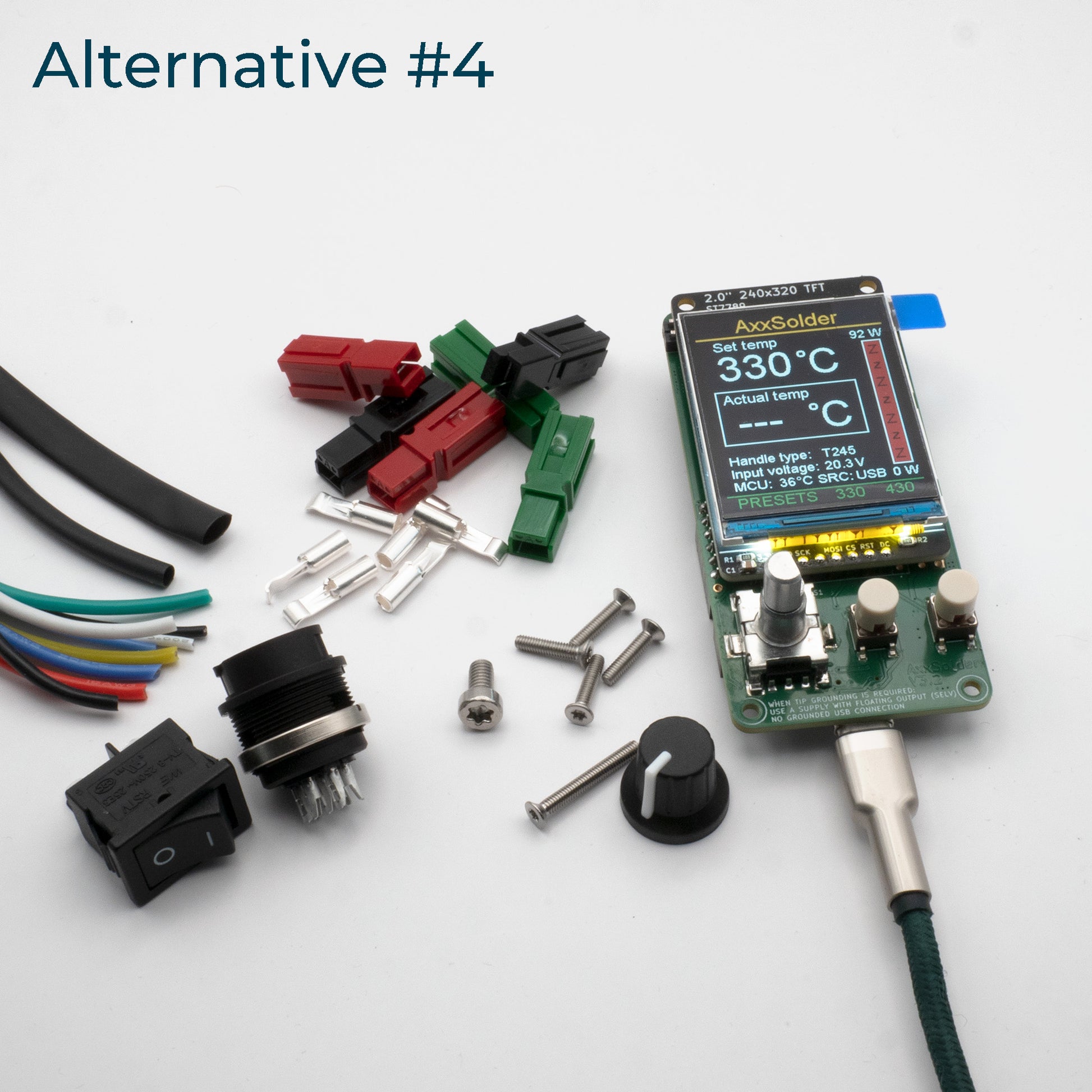 AxxSolder solves this issue with a design made from scratch by AxxAxx(me) while also implementing dual power. Either a 9-24 V DC source or USB PD can be used for on the go! For this reason, two different enclosures are designed, a portable version and a station version and the community is continuing to design more!